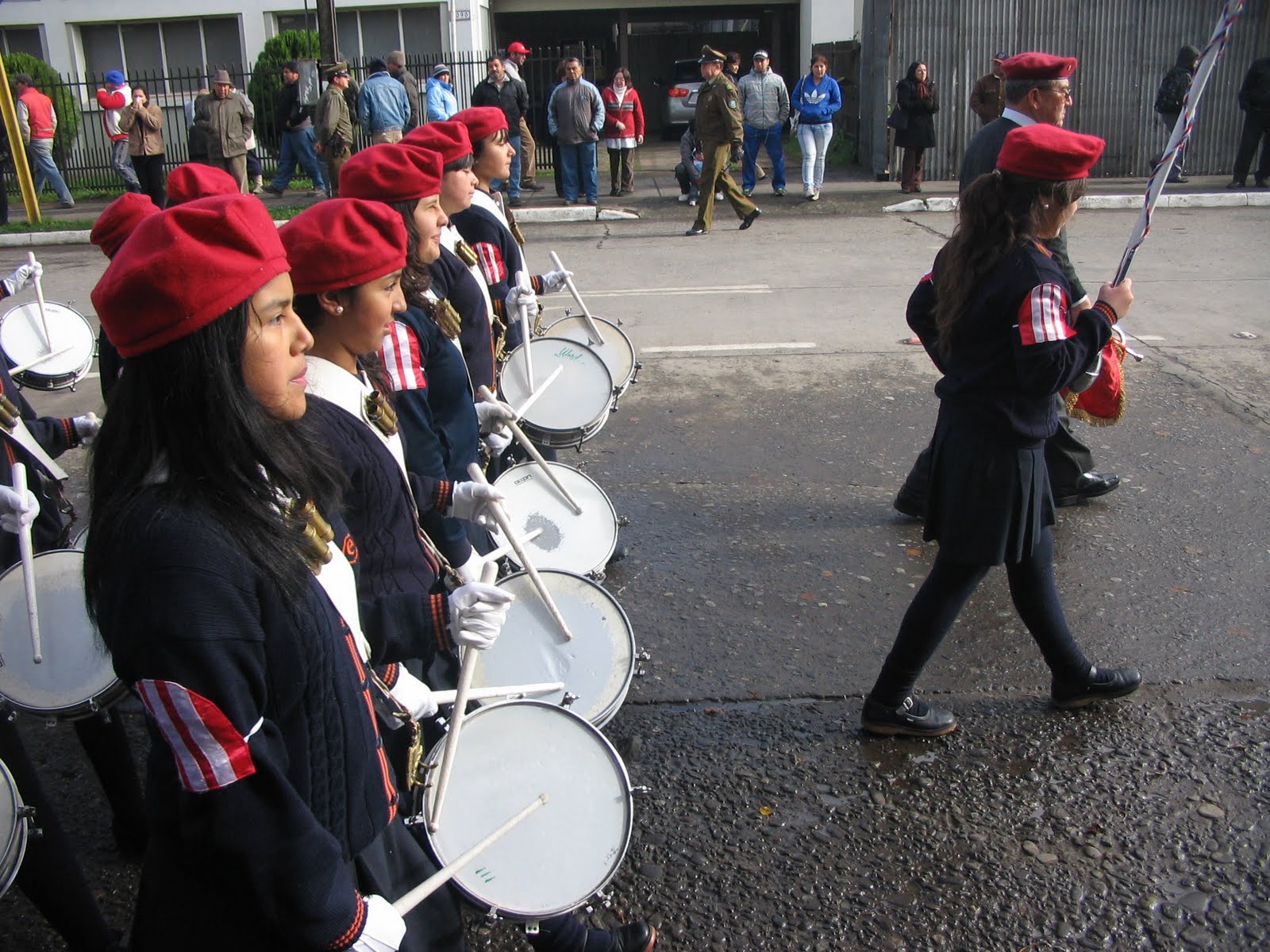 A los sones marciales de una banda estudiantil se dio comienzo al desfile en el que participaron los siguientes colegios: Escuela Andalue, Liceo Jorge Teillier, Escuela N° 1, Escuela Los Carrera, Escuela N° 6, Escuela E-284, Escuela Irene Frei, y Escuela particular N° 12.